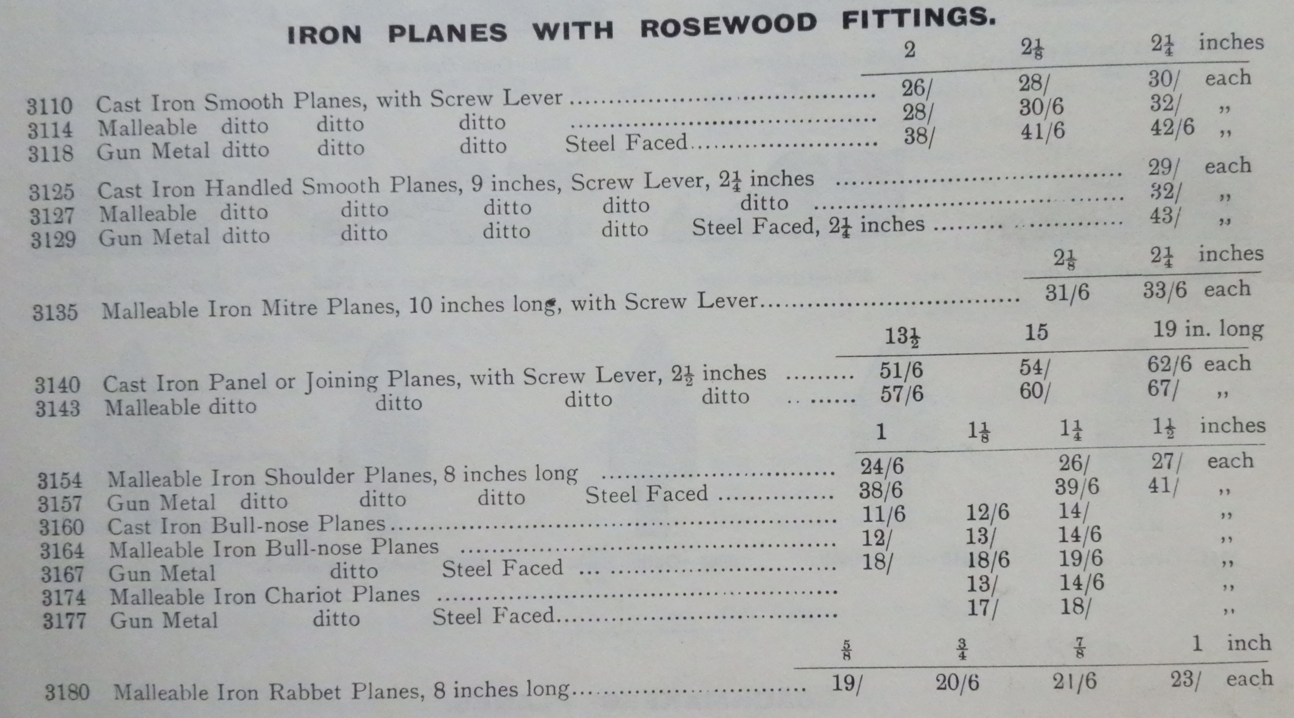 The 1921 catalogue shows that all Cast Iron planes had been discontinued [3110;3125;3140 and 3160]. None of these planes appear in 1928.