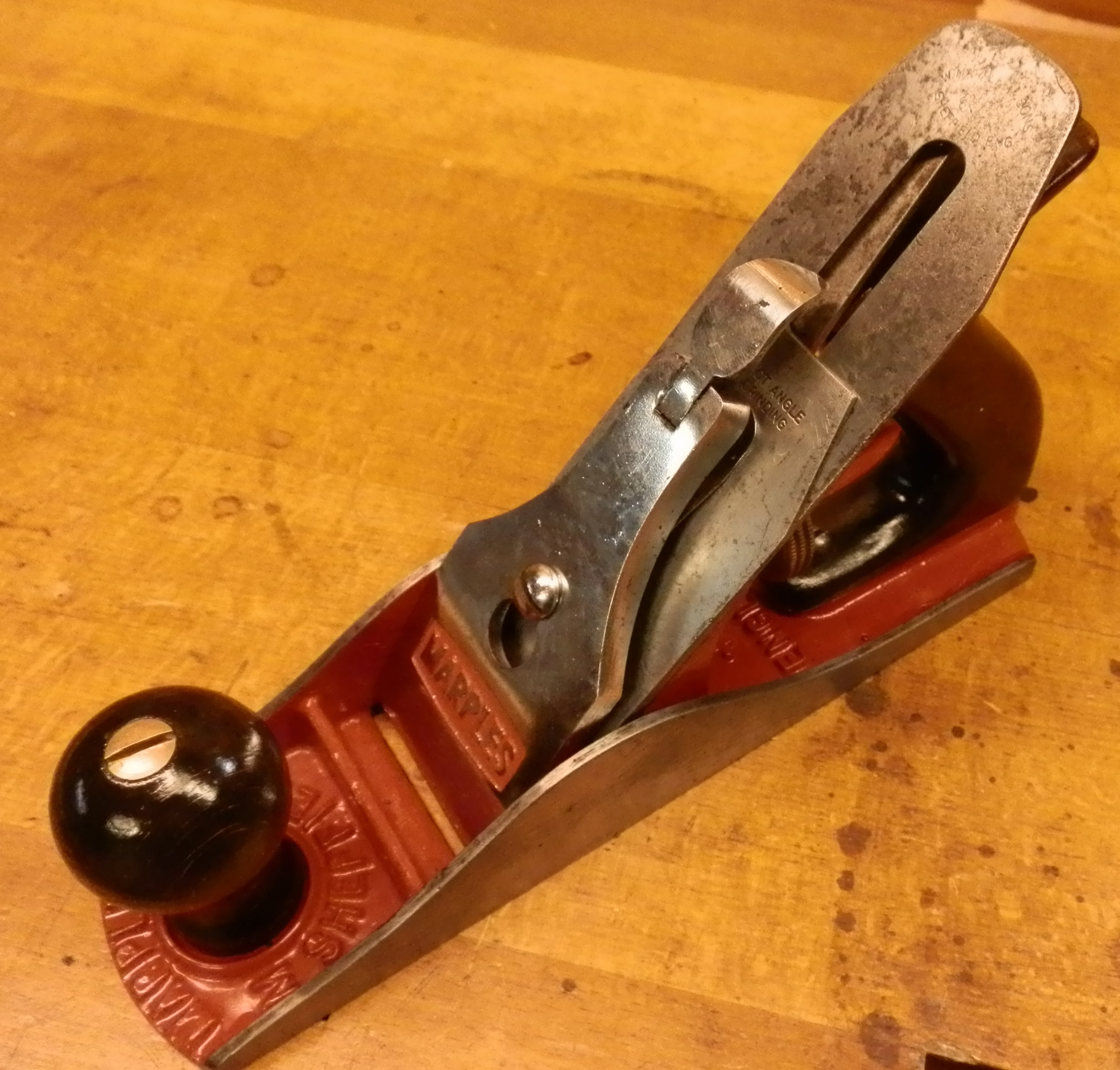 [I just wonder how often this modification was actually used, having seen so many planes with this cap iron but which had wildly incorrect grinding angles! [Some as steep as 60 degrees, no wonder they were for sale!….” Damn tool doesn’t work worth a spit!”] It is now possible that the number 3 planes had a screw inserted through the toe of the handle and into the base, but this has yet to be verified.